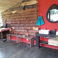 Three cozy cabins for glamping, there are equipped with a double bed. Commun space for meetings around the campfire. They have view to mountains and a private bathroom.